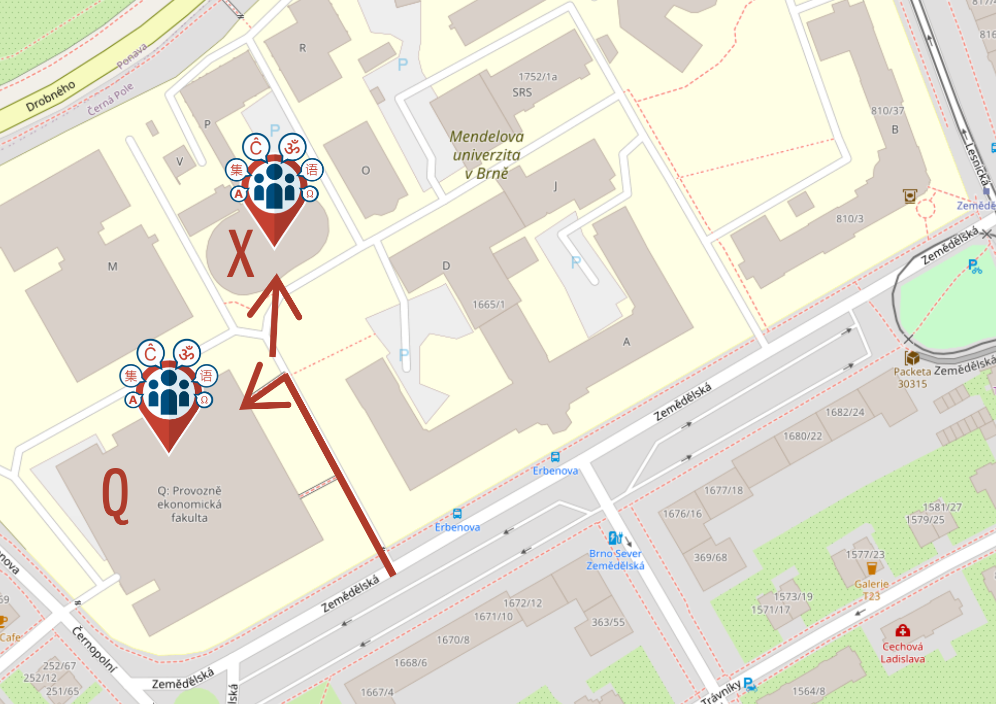 The Polyglot Gathering 2026 will take place at the Mendel University in Brno (Mendelova univerzita v Brně aka Mendelu) in the buildings “X” and “Q”.